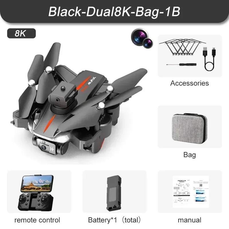 1. The front lens is placed with wide-angle 8K high-definition WIFI, and the optical flow high-definition lens at the bottom can switch the camera angle. The servo gimbal design increases stability, and EIS electronic image stabilization is added to make the picture lines clearer